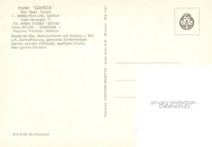 Riva_del_Garda Hotel Garda Pool Riva_del_Garda postalisch nicht gelaufen nach 1965 Erhaltung siehe scans [LiesaD40] LiesID40