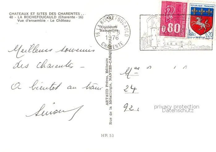Rochefoucauld_La Chateau Rochefoucauld_La postalisch gelaufen 1976 Erhaltung siehe scans [KathaD81] Kathoren