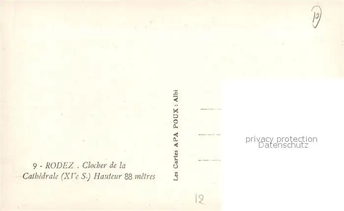Rodez Clocher de la Cathedrale Rodez postalisch nicht gelaufen 1921-1965 Erhaltung siehe scans [WerneD78] WernPID7
