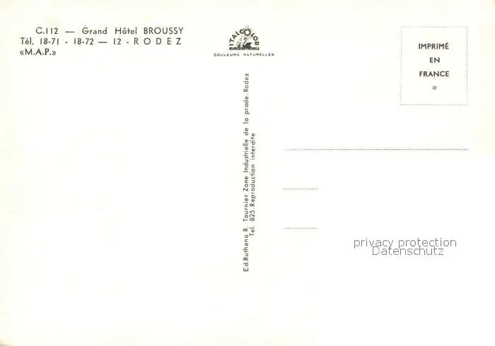 Rodez Grand Hôtel Broussy Rodez postalisch nicht gelaufen nach 1965 Erhaltung siehe scans [FriedD77] Frierer