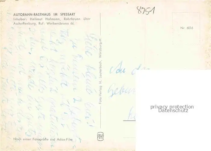 Rohrbrunn Autobahn-Rasthaus im Spessart Restaurant postalisch nicht gelaufen Erhaltung siehe scans [FriedD77]
