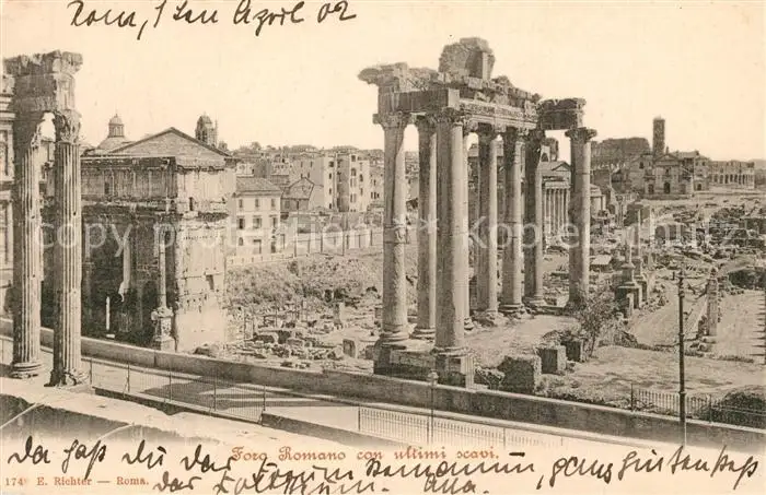 Roma_Rom Foro Romano con ultimi scavi Roma_Rom postalisch gelaufen 1902 Erhaltung siehe scans [KathaD81] Kathoren