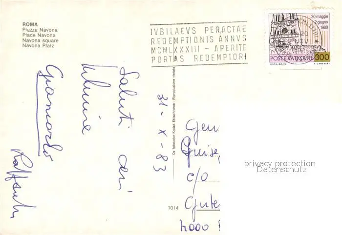 Roma_Rom Piazza Navona Roma_Rom postalisch gelaufen 1983 Erhaltung siehe scans [KathaD81] Kathoren