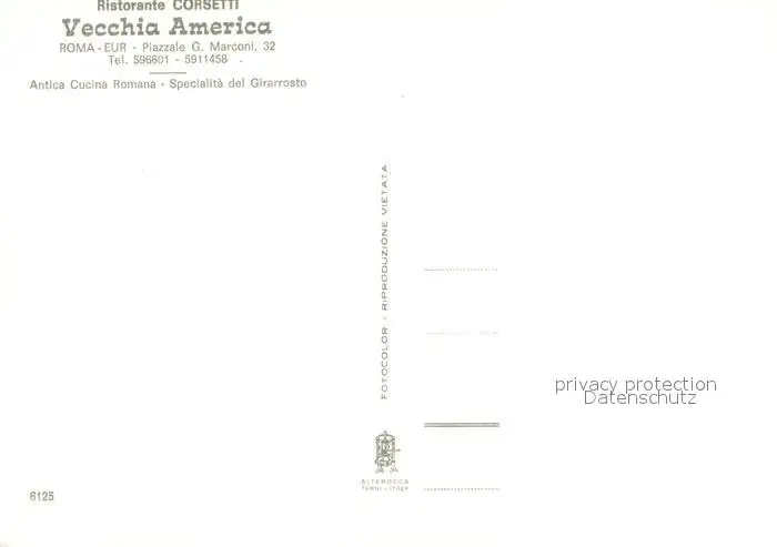Roma_Rom Ristorante Corsetti Vecchia America Roma_Rom postalisch nicht gelaufen nach 1965 Erhaltung siehe scans [WerneD78] WernPID7