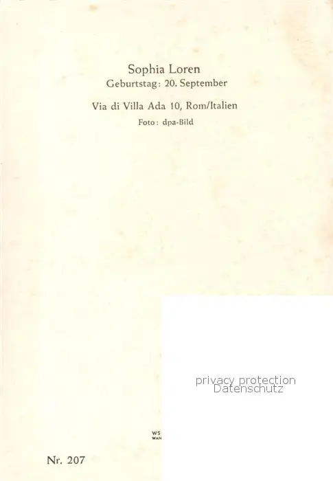 Roma_Rom Sophia Loren Roma_Rom postalisch nicht gelaufen nach 1965 Erhaltung siehe scans [KathaD81] Kathoren