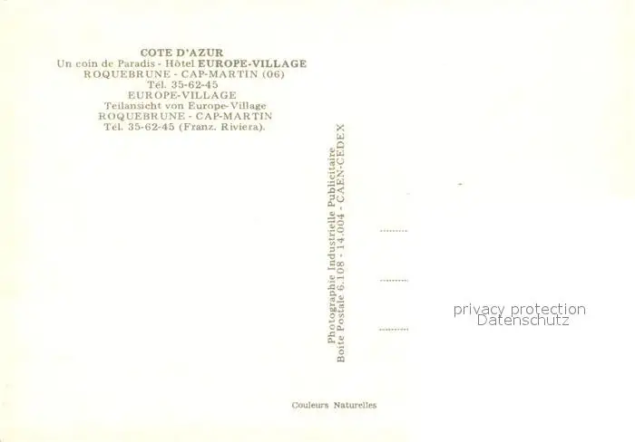 Roquebrune-Cap-Martin Un coin de Paradis Hotel Europe Village Roquebrune-Cap-Martin postalisch nicht gelaufen nach 1965 Erhaltung siehe scans [WerneD78] WernPID7