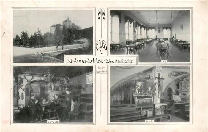 Rorschach_Bodensee_SG St. Anna Schloss Saal Jaegerstuebli Kapelle postalisch gelaufen 1912 Erhaltung siehe scans [FriedD77] Frierer