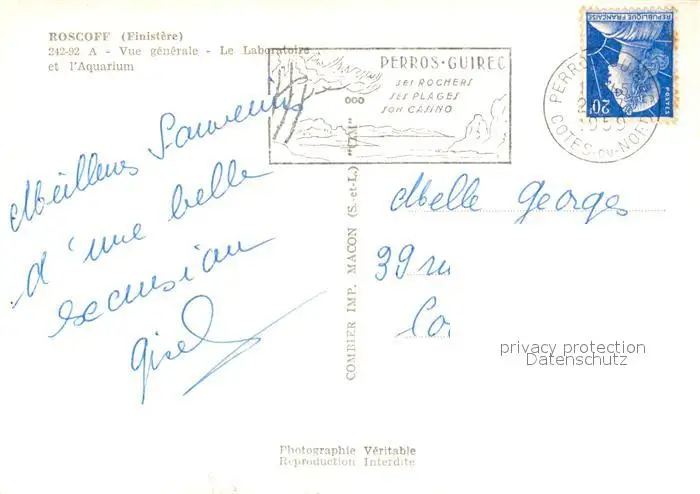 Roscoff Le Laboratoire et l'Aquarium vue aérienne Roscoff postalisch gelaufen 1959 Erhaltung siehe scans [FriedD77] Frierer