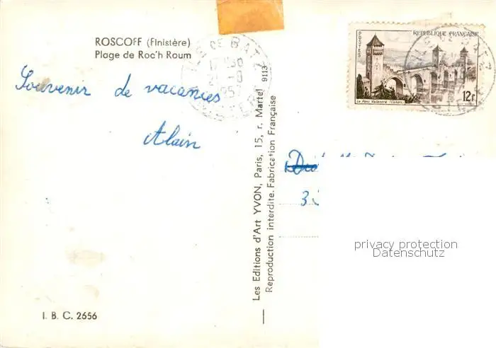 Roscoff Plage de Roch Raum Roscoff postalisch gelaufen 1957 Erhaltung siehe scans [FriedD77] Frierer