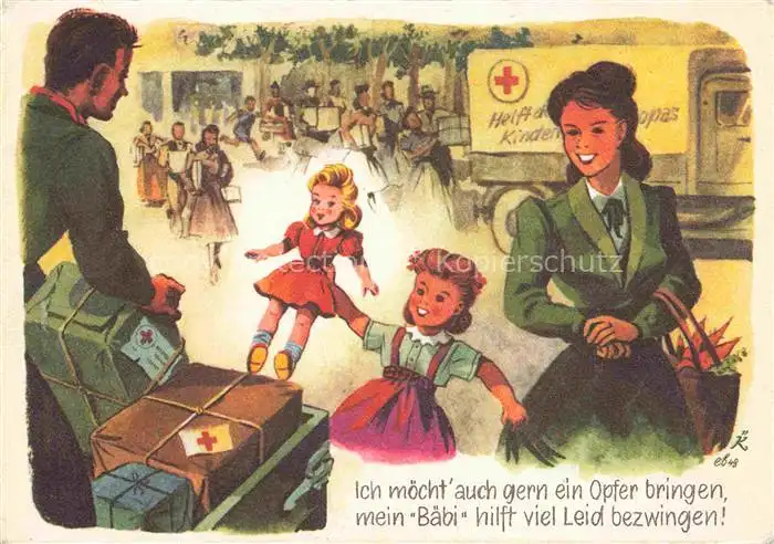 AK / Ansichtskarte Rotes Kreuz Red Cross Croix Rouge-- Kind Puppe Spende
