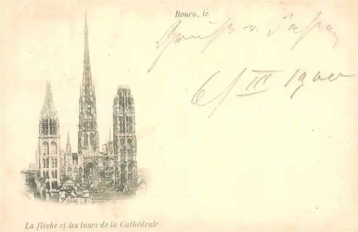 Rouen_76 La fleche et les tours de la Cathedrale postalisch gelaufen 1900 Erhaltung siehe scans [WerneD78] WernPID7
