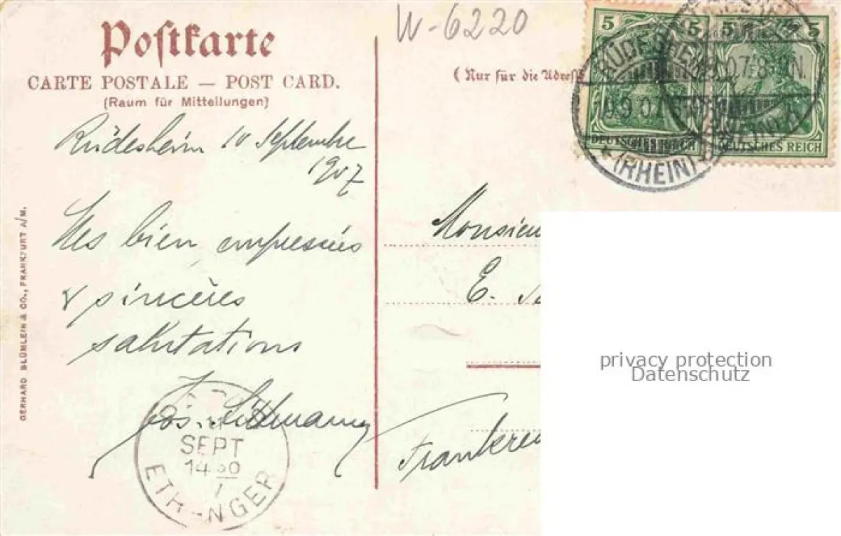 alte Postkarte RueDESHEIM am Rhein Hessen Panorama postalisch gelaufen Erhaltung siehe scans [WerneD78]
