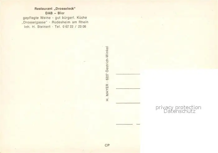 Ruedesheim_Rhein Restaurant Drosseleck in der Drosselgasse Ruedesheim Rhein postalisch nicht gelaufen nach 1965 Erhaltung siehe scans [FriedD77] Frierer