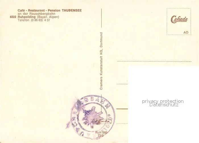 Ruhpolding Cafe Restaurant Pension Taubensee Panorama Ruhpolding postalisch nicht gelaufen nach 1965 Erhaltung siehe scans [WerneD78] WernPID7