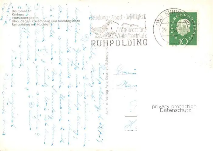 Ruhpolding Kurhaus Rauschbergseilbahn Dorfbrunnen Ruhpolding postalisch gelaufen 1959 Erhaltung siehe scans [PaolaD17] PaolPID1