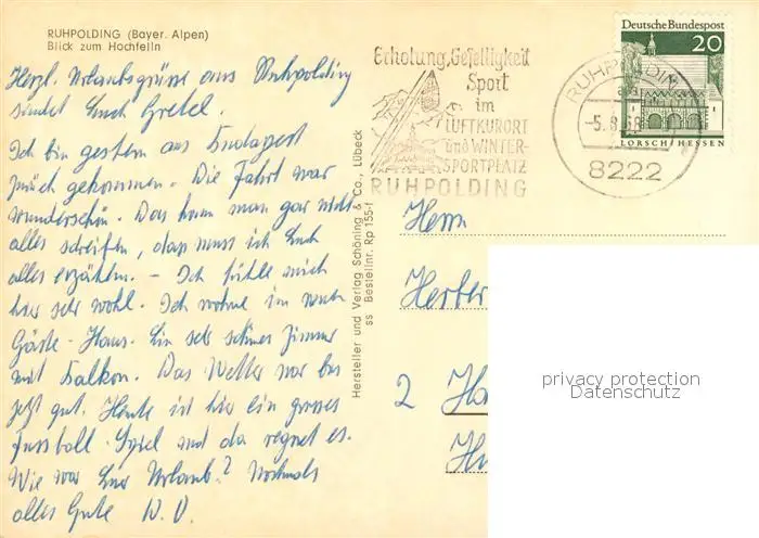 Ruhpolding Panorama mit Hochfelln Ruhpolding postalisch gelaufen 1968 Erhaltung siehe scans [WerneD78] WernPID7