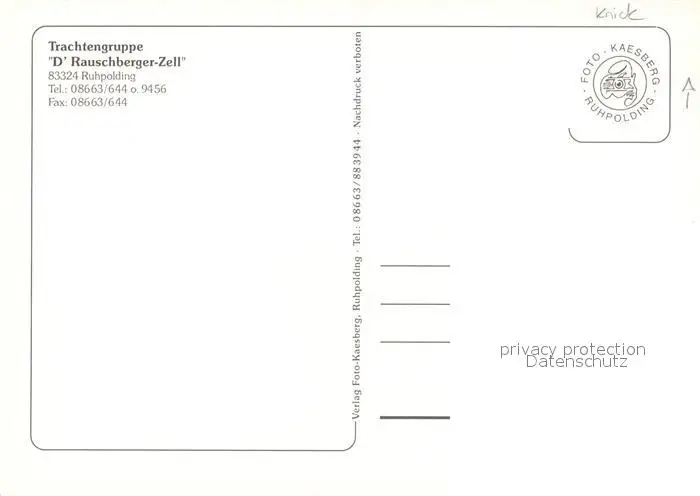 Ruhpolding Trachtengruppe D' Rauschberger Zell Alpenpanorama Ruhpolding postalisch nicht gelaufen nach 1965 Erhaltung siehe scans [FriedD77] Frierer