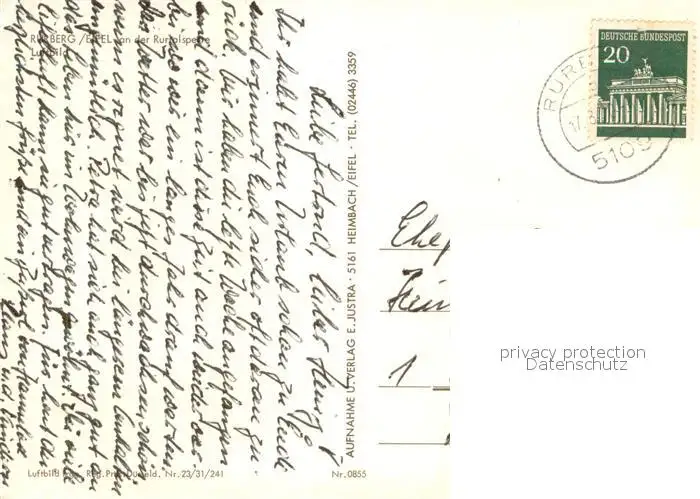 Rurberg Fliegeraufnahme Eifel Rurtalsperre Rurberg postalisch gelaufen nach 1965 Erhaltung siehe scans [LiesaD40] LiesID40