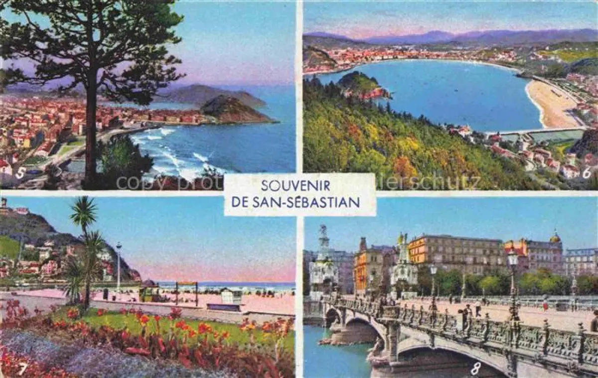 74107816 SAN SEBASTIAN DONOSTIA Saint-Sebastien Pais Vasco ES Vue generale La Concha Les Jardins de la Plage Le Pont Marie Christine postalisch nicht gelaufen Erhaltung siehe scans [WerneD78] Wern Katcode 11510