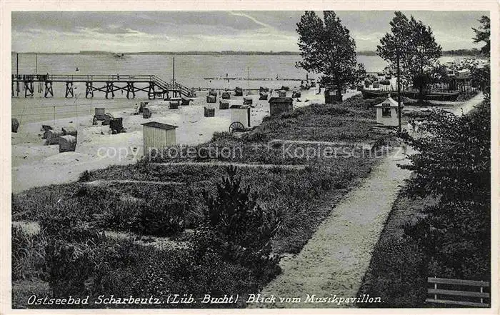alte Postkarte SCHARBEUTZ Ostseebad Blick vom Musikpavillon Strand Promenade postalisch gelaufen Erhaltung siehe scans [FriedD77]