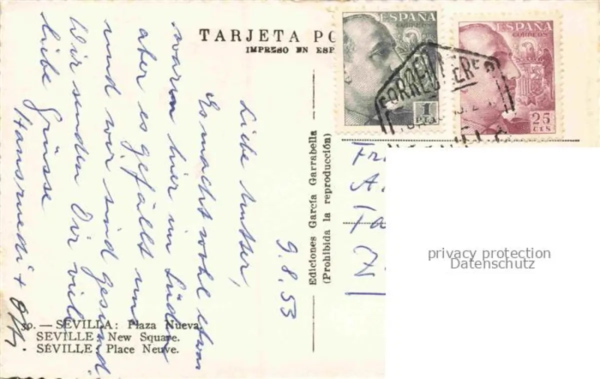 old postcard SEVILLA Andalucia ES Plaza Nueva postalisch gelaufen Erhaltung siehe scans [WerneD78]