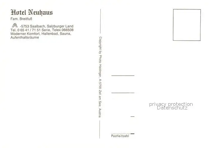 Saalbach-Hinterglemm Hotel Neuhaus Saalbach-Hinterglemm postalisch nicht gelaufen nach 1965 Erhaltung siehe scans [KathaD81] Kathoren