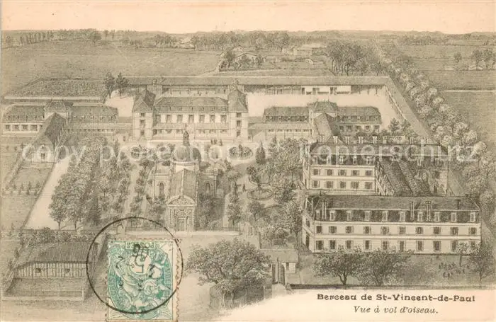Saint-Paul-les-Dax Berceau de Saint Vincent de Paul vue à vol d'oiseau Kuenstlerkarte Saint-Paul-les-Dax postalisch gelaufen 1905 Erhaltung siehe scans [FriedD77] Frierer