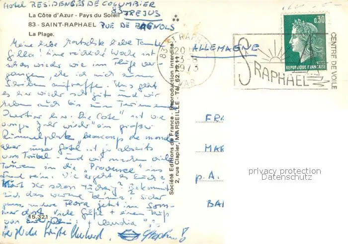 Saint-Raphael_83 La plage Côte d Azur vue aérienne postalisch gelaufen 1973 Erhaltung siehe scans [FriedD77] Frierer