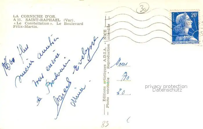 Saint-Raphael_Var Hotel Le Constellation Boulevard Felix Martin Saint-Raphael Var postalisch gelaufen 1921-1965 Erhaltung siehe scans [FriedD77] Frierer