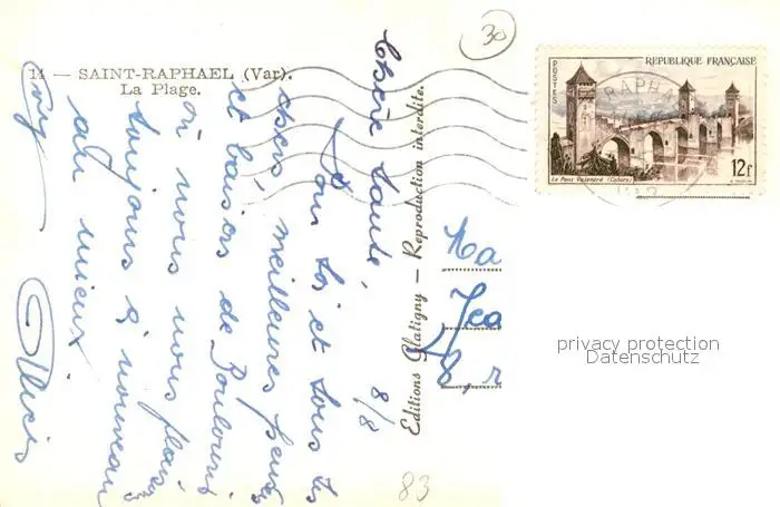 Saint-Raphael_Var La Plage Cote d'Azur Saint-Raphael Var postalisch gelaufen 1956 Erhaltung siehe scans [FriedD77] Frierer