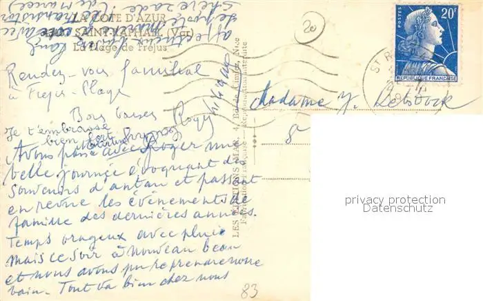 Saint-Raphael_Var La Plage de Fréjus Cote d'Azur Saint-Raphael Var postalisch gelaufen 1959 Erhaltung siehe scans [FriedD77] Frierer