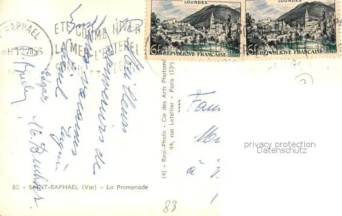 Saint-Raphael_Var La Promenade Cote d'Azur Saint-Raphael Var postalisch gelaufen 1956 Erhaltung siehe scans [FriedD77] Frierer
