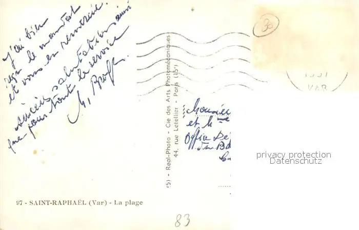 Saint-Raphael_Var La plage Cote d'Azur Saint-Raphael Var postalisch gelaufen 1921-1965 Erhaltung siehe scans [FriedD77] Frierer