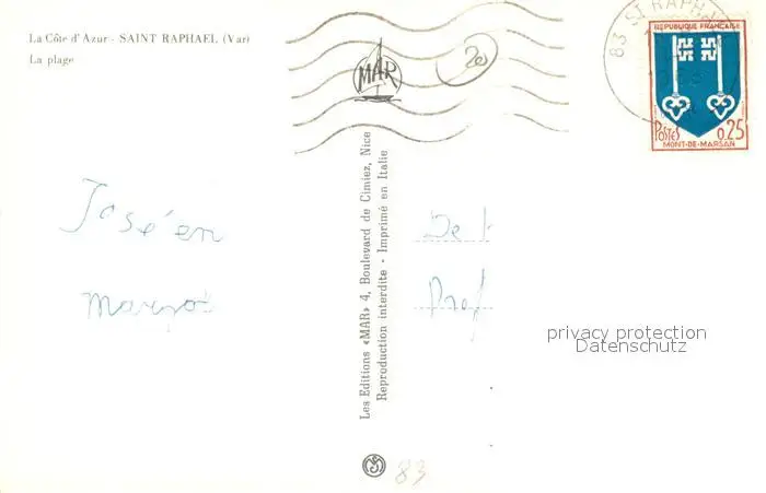 Saint-Raphael_Var La plage Cote d'Azur Saint-Raphael Var postalisch gelaufen 1968 Erhaltung siehe scans [FriedD77] Frierer