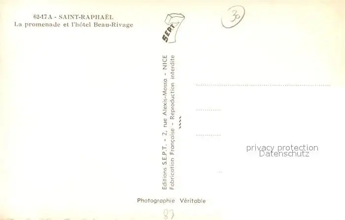 Saint-Raphael_Var La promenade Hotel Beau Rivage Cote d'Azur Saint-Raphael Var postalisch nicht gelaufen 1921-1965 Erhaltung siehe scans [FriedD77] Frierer