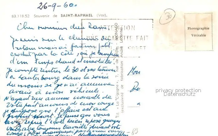 Saint-Raphael_Var Promenade Plage Cote d'Azur Saint-Raphael Var postalisch gelaufen 1960 Erhaltung siehe scans [FriedD77] Frierer