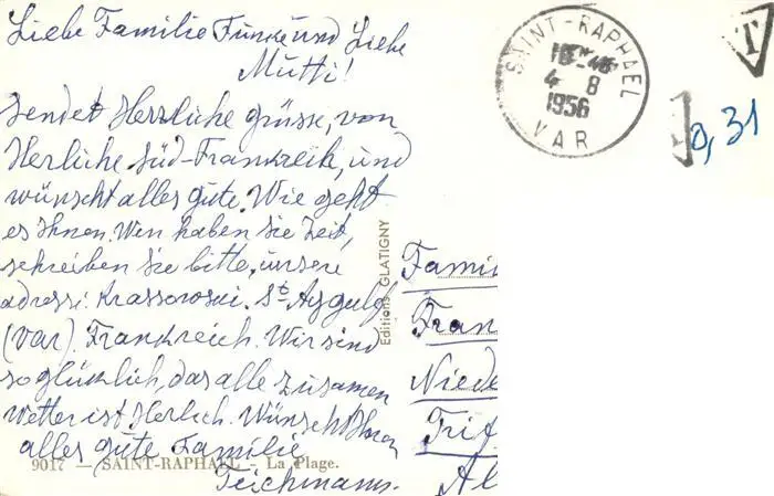 Saint-Raphael__83_Var La Plage postalisch gelaufen 1956 Erhaltung siehe scans [WerneD78] WernPID7
