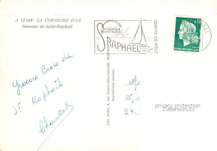 Saint-Raphael__83_Var Souvenir de Saint Raphael postalisch gelaufen nach 1965 Erhaltung siehe scans [WerneD78] WernPID7