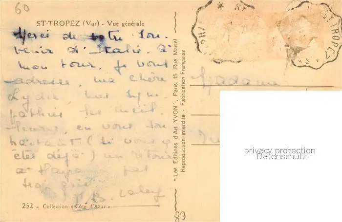 Saint_Tropez_Var Vue generale Saint_Tropez_Var postalisch gelaufen 1921-1965 Erhaltung siehe scans [WerneD78] WernPID7