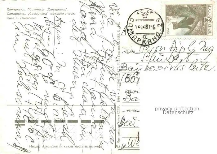 old postcard Samarkand Usbekistan Hotel Samarkand postalisch gelaufen Erhaltung siehe scans [IrynaD87]