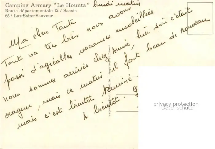 Sassis Camping Armary Le Hounta Sassis postalisch nicht gelaufen nach 1965 Erhaltung siehe scans [FriedD77] Frierer