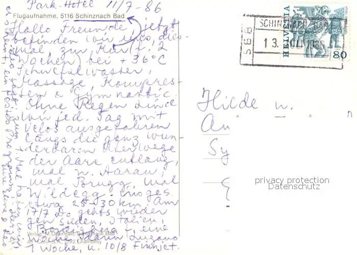 Schinznach_Bad Fliegeraufnahme Schinznach_Bad postalisch gelaufen 1986 Erhaltung siehe scans [LiesaD40] LiesID40