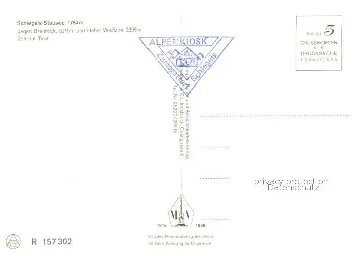 Schlegeis-Stausee_Zillertal_Tirol_AT Stausee m. Breitnock postalisch nicht gelaufen nach 1965 Erhaltung siehe scans [LiesaD40] LiesID40