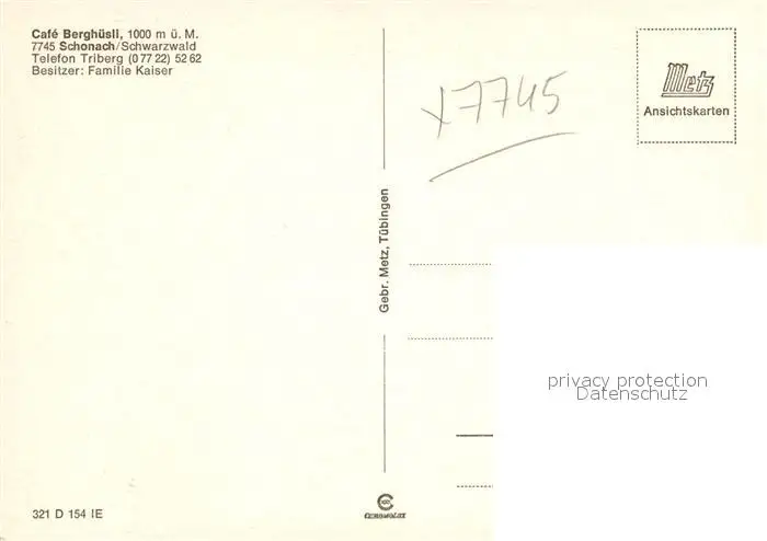 Schonach_Schwarzwald Cafe Bergh?sli Schonach Schwarzwald postalisch nicht gelaufen nach 1965 Erhaltung siehe scans [KathaD81] Kathoren