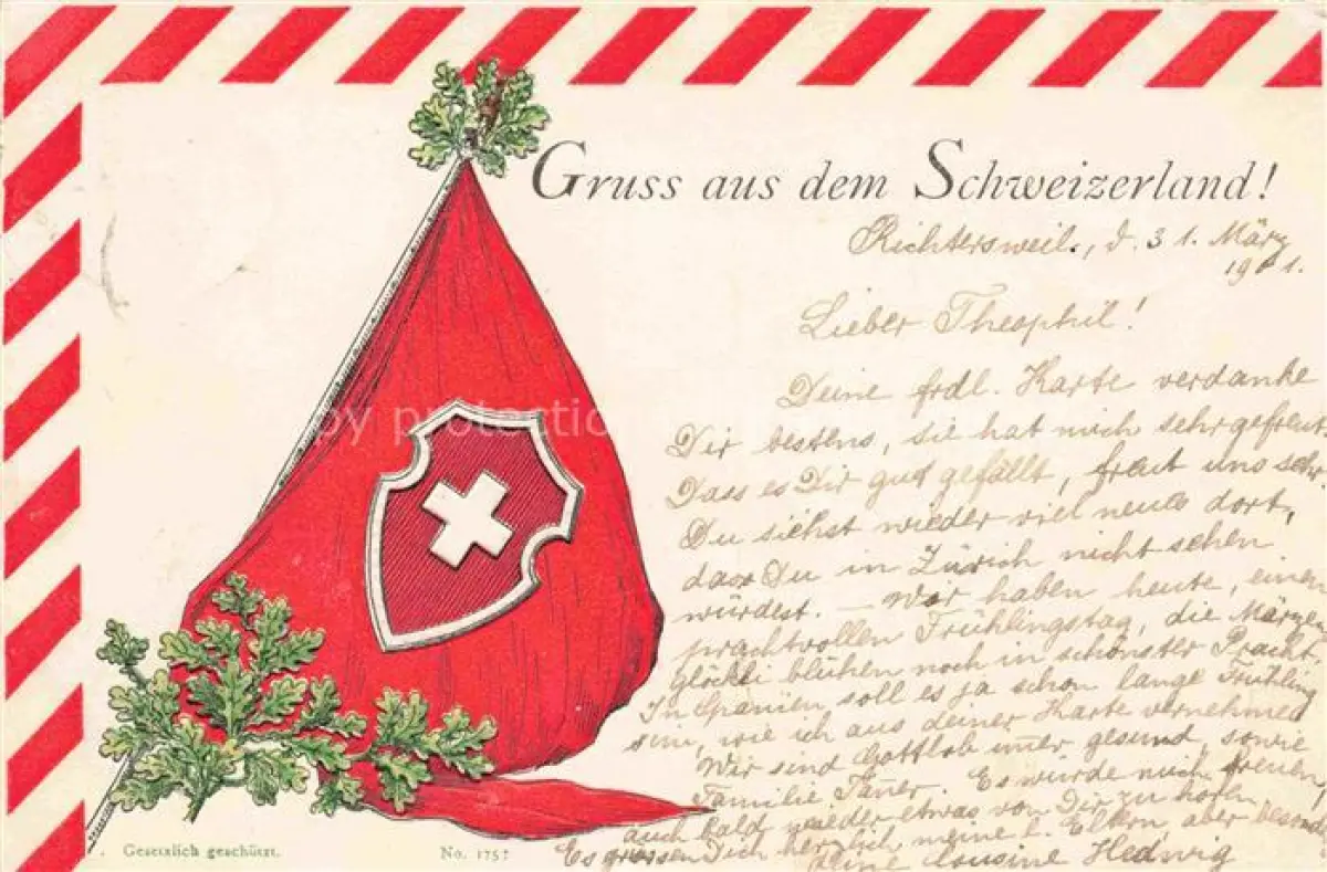 alte Postkarte Schweiz Land Staat Schweizerland Fahne postalisch gelaufen Erhaltung siehe scans [IrynaD87]