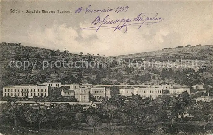Scicli Ospedale Ricovero Busacca postalisch gelaufen 1909 Erhaltung siehe scans [WerneD78] WernPID7