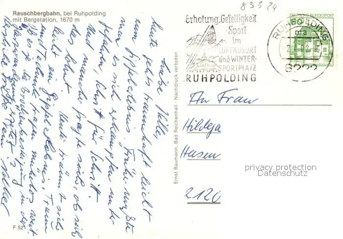 Seilbahn Rauschberg Ruhpolding Bergstation Seilbahn postalisch gelaufen nach 1965 Erhaltung siehe scans [PaolaD17] PaolPID1