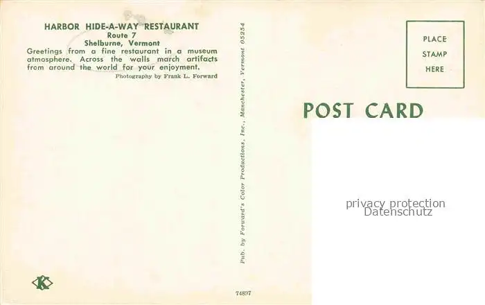 Shelburne Vermont USA Harbour Hide-a-Way Restaurant Bar postalisch nicht gelaufen Erhaltung siehe scans [WerneD78]