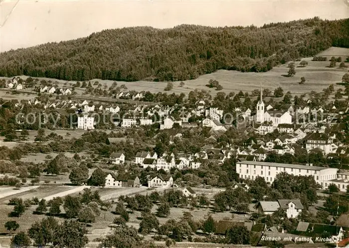 Sirnach Ansicht mit Katholischer Kirche Sirnach postalisch gelaufen 1921-1965 Fliegeraufnahme Erhaltung siehe scans [FriedD77] Fliegeraufnahme Frierer