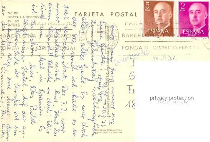 Sitges_ES Hotel La Reseerva postalisch gelaufen 1976 Erhaltung siehe scans [FriedD77] Frierer